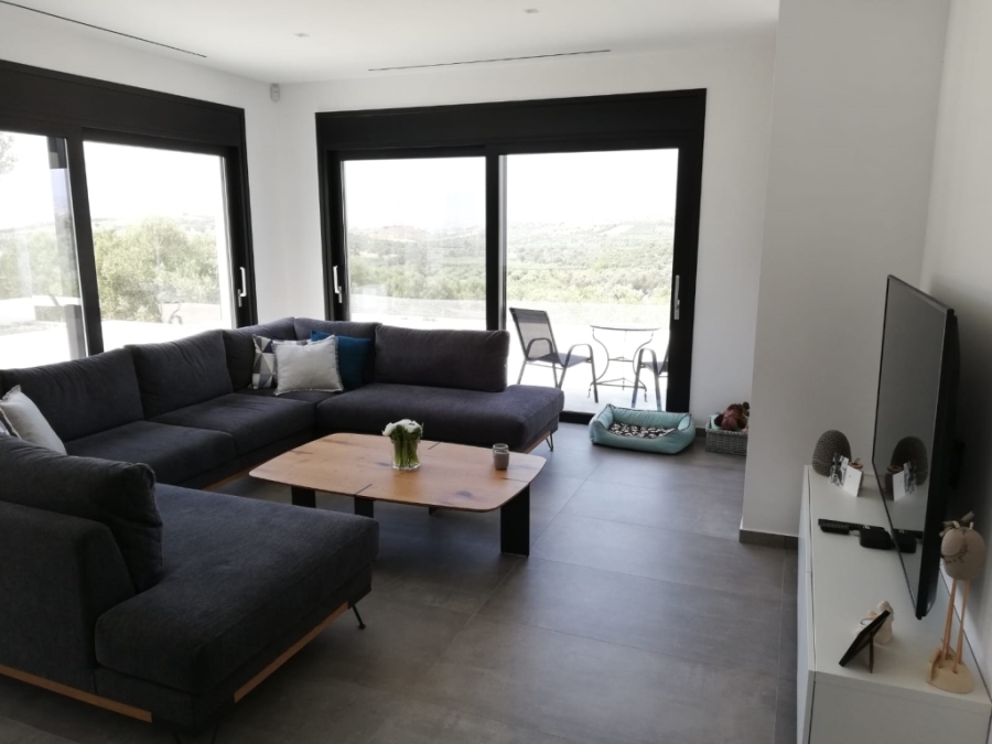 Tympaki, Kamilari, Villa For Sale, 185 sq.m., Property Status: Amazing, Floor: Ground floor, 1 Level(s), 3 Bedrooms (2 Master), 1 Kitchen(s), 3 Bathroom(s), 1 WC, Heating: Autonomous - Heat Pump, Building Year: 2022, Energy Certificate: A, 3 parking(s), Floor type: Tiles, Type of door frames: Aluminum, Features: Security door, Security alarm, Storage room, Fireplace, Jacuzzi, Internet Line, Electric Appliances, Double Glazed Windows, Window Screens, Luxury, Bright, AirConditioning, Solar water system, Automatic Watering, Trees, Swimming pool, Back yard (Garden), New Construction, Holiday Home, Price: 1.150.000€. Πετειναράκης Νίκος, email: petinarakis.nikos@gmail.com